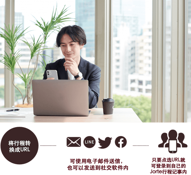 ・可将转换后的URL通过电子邮件、LINE、Facebook、Twitter等方式分享。