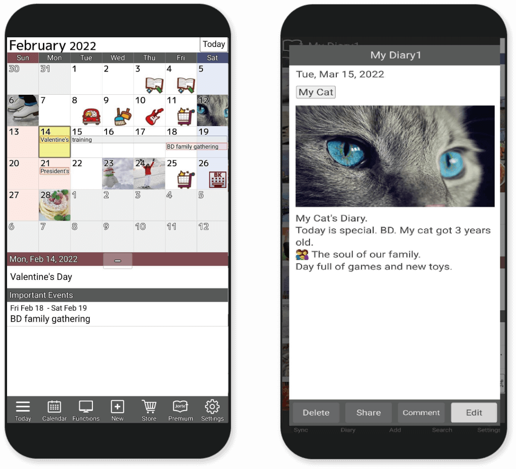 일상적인 기록이나 업무메모 등을 글과 사진으로 기록할 수 있습니다. 일정 뿐만 아니라 일기와 사진, 매일의 기록, 업무메모 등에 활용할 수 있습니다. 등록한 사진은 캘린더상에 표시할 수도 있습니다. 또한 태그를 부착하여 여러 개의 일기를 간단하게 정리할 수 있습니다. 이전 일정뿐만 아니라 자신이 과거에 무엇을 했는지 조르테는 당신이 걸었던 날들도 관리합니다. 소중한 추억은 사진과 함께 조르테어플에 보관하세요.