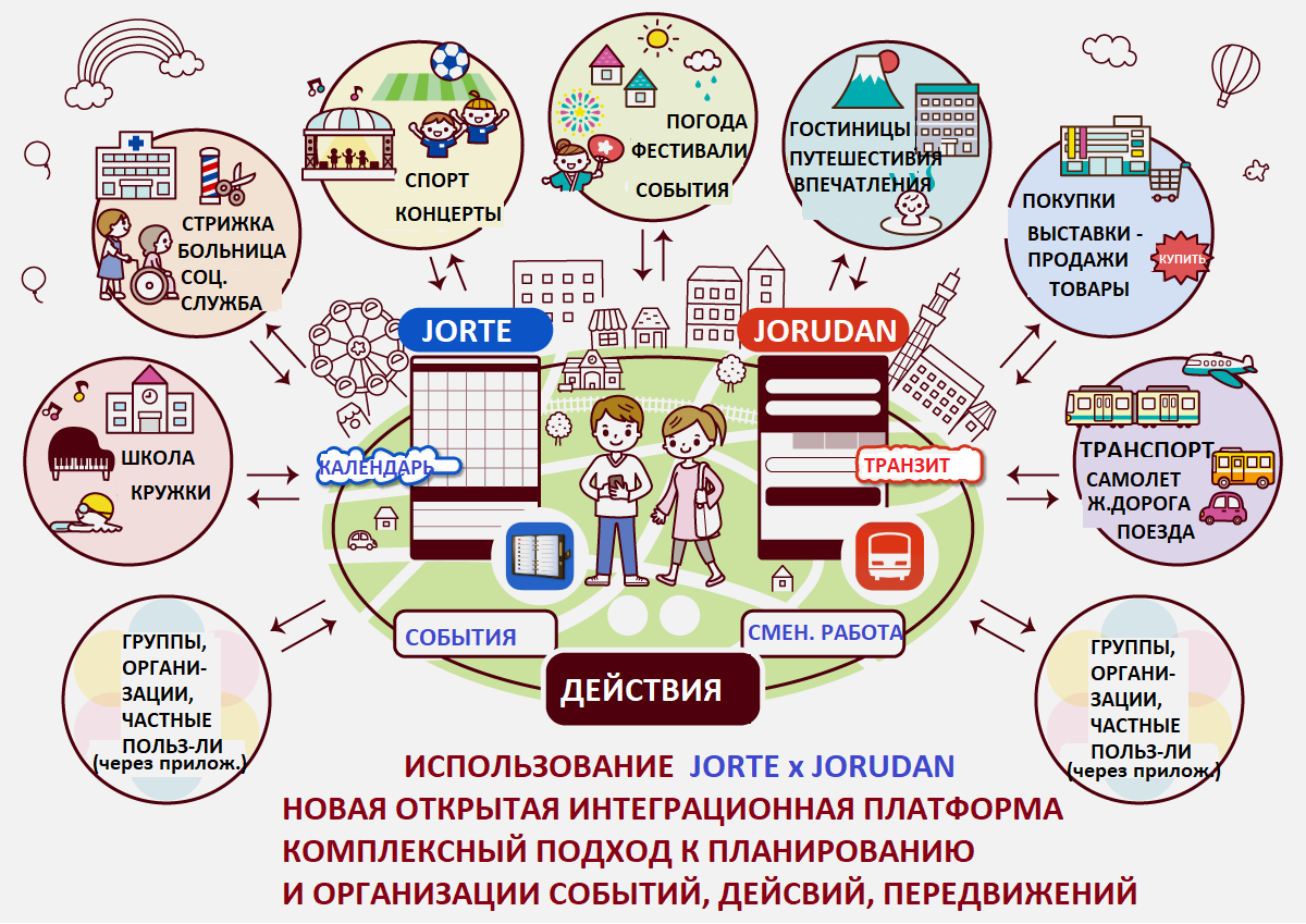 Jorudan Co., Ltd. (Главное управление: Синдзюку, Токио, Глава фирмы: Тосикадзу Сато (Toshikazu Sato), именуемый в дальнейшем Jorudan), который предлагает бизнес MaaS, и Jorte Co., Ltd. (Главное управление: Минато-ку, Токио, Глава фирмы и генеральный директор), который предлагает услуги календаря : Гоити Симохана (Goichi Shimohana) (Jorte) начал создавать интегрированную открытую платформу, которая соединяет различные сервисы, ориентированные на действие, путем интеграции соответствующих сервисов с 17 февраля. Обе компании, основанные на открытом консорциуме, в котором компании и частные лица могут свободно участвовать, стремясь использовать данные для подключения людей к впечатляющему будущему, уделяя особое внимание созданию эмоциональных переживаний, которые активируют поведение, стремятся создать различные бизнес-модели, включающие данные. использование для создания социальной инфраструктуры.