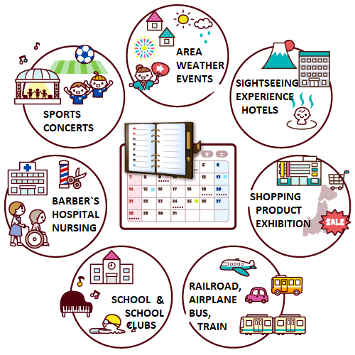 학교의 연간 행사일정을 디지털화해 시간표와 급식 식단을 함께 표시하도록 한다. 행사의 신청 기능이나 결석 연락접수 기능 등, 선생님, 보호자의 부담경감을 위한 구조를 동시에 제공한다. 또한 PTA나 반상회 등의 정보 공유 및 지역 정보와 연계함으로써 학교(어린이)를 중심으로 한 지역 조성에 활용한다.