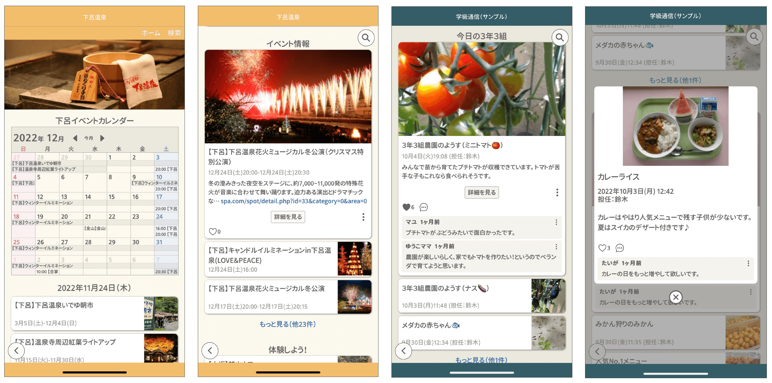 地域の情報や観光情報、学校やPTA活動、スポーツチームや趣味のクラブなど、日程やお知らせを共有するシーンにおいて便利に活用することができます。