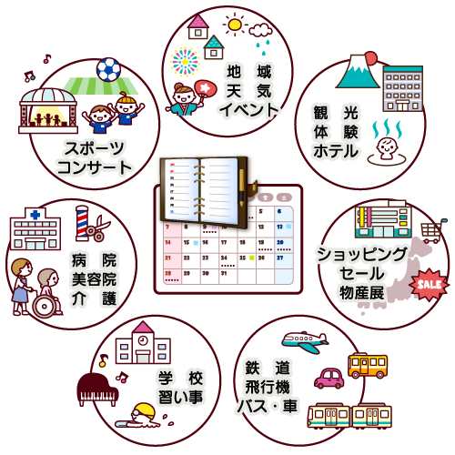学校の行事予定表を見るときに近くの商店街のイベントを知ったり、歯医者に行くための電車の時間を調べるタイミングで途中のパン屋の焼き上がり時間を知るなど。
